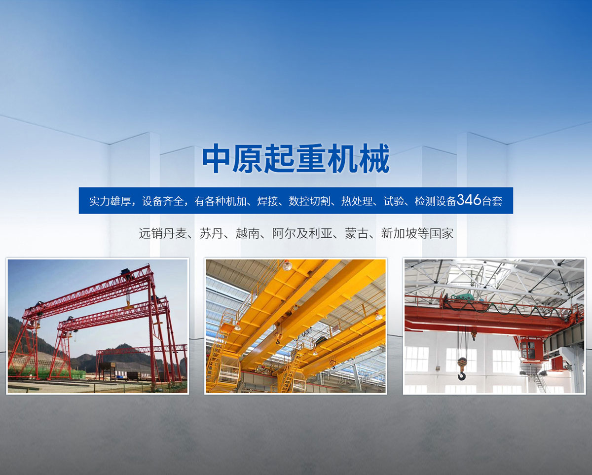 新鄉市中原起重機械有限公司成立于2000年,地處中原,輻射全國28個省市自治區,設外埠經銷處、辦事處268個。產品行銷工礦、建材、化工、冶金、電力、交通、鐵路、油田、港口等各個行業。遠銷丹麥、蘇丹、越南、阿爾及利亞、蒙古、新加坡等國家?! 」緦嵙π酆瘢O備齊全,有各種機加、焊接、數控切割、熱處理、試驗、檢測設備7臺;有機加工、熱處理、單、雙梁橋門機生產、檢測、安裝等9個車間,研究中心、運輸公司、安裝維修服務公司等機構,?  主要產品有:LD型1~20噸電動單梁起重機系列產品;5~600噸通用橋式、門式、冶金、上旋轉下旋轉電磁吊、絕緣、抓斗、防爆起重機系列產品;LH3~100噸葫蘆雙梁系列產品;MH5~32噸葫蘆門式系列產品;0.5~40噸CD1、MD1鋼絲繩電葫蘆系列產品;HS1型0.5~20噸手動葫蘆系列產品;0.5~10噸環鏈電動葫蘆系列;0.5~40噸彎道電動葫蘆系列產品;裝卸橋、造船門機、架橋機、鑄造吊和水電大噸位起重機系列產品?! 」窘⒘藦娪辛Φ馁|量保證體系和生產過程的質量控制系統,嚴格執行國家設計、生產標準,有嚴格的生產工藝過程和標準,嚴格的檢驗、檢測標準和手段。